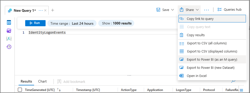 Currently, Advanced Hunting and Sentinel have limitations when running large queries. Our ultimate goal is to visualize data in Power BI, so we’ll first store logs as CSV files in SharePoint.