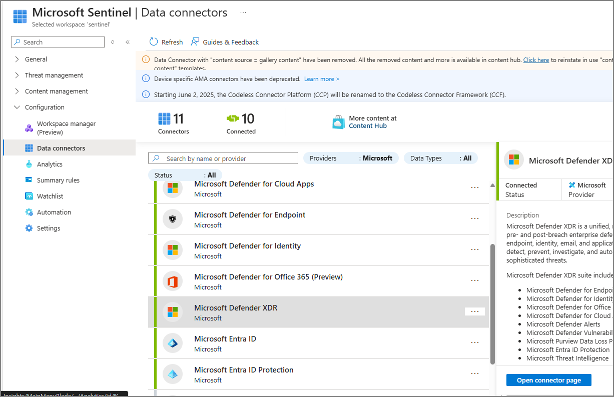 Connector Setup: Navigate to Microsoft Defender XDR → Open connector page.