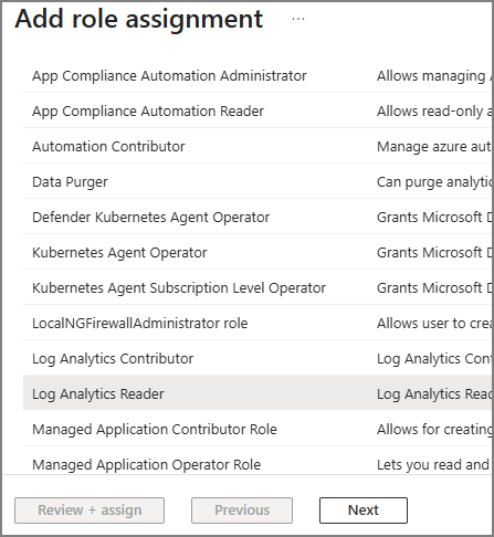 9. In Log Analytics Workspaces → Access control (IAM), click Add role assignment