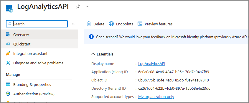 To achieve this, we’ll use the Log Analytics API, which requires Enterprise App registration.