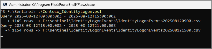 Once these values are ready, you can use a PowerShell script to call the Log Analytics API and export logs in chunks.