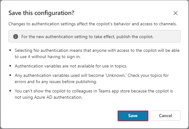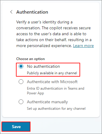 No authentication -> Save