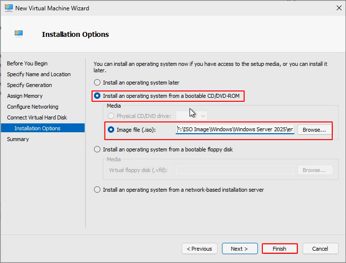 Specify Installation Disk -> Finish