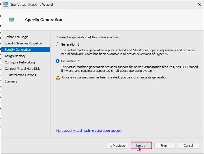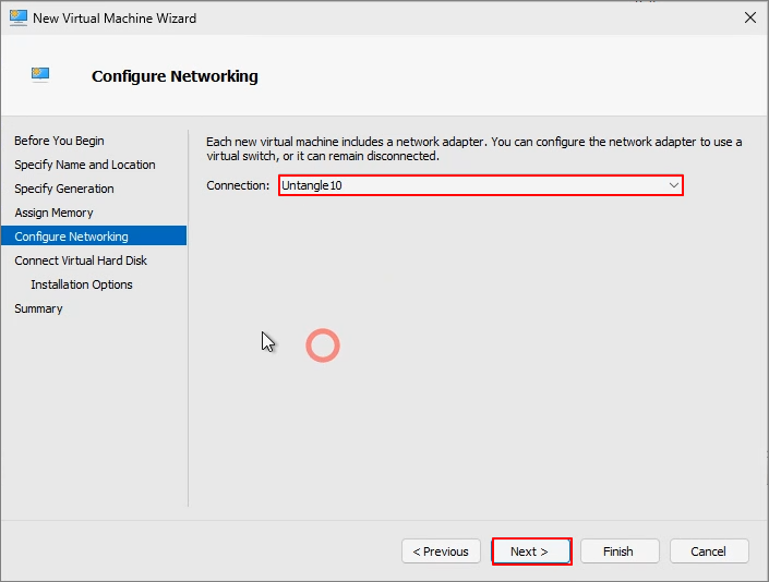 Specify Network Adapter -> Next