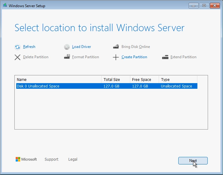 Confirm Disk Location -> Next