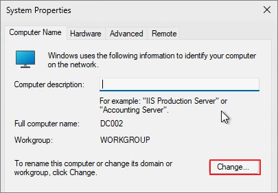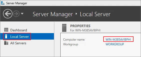 Navigate to Server Manager -> Local Server -> Click on Computer Name.