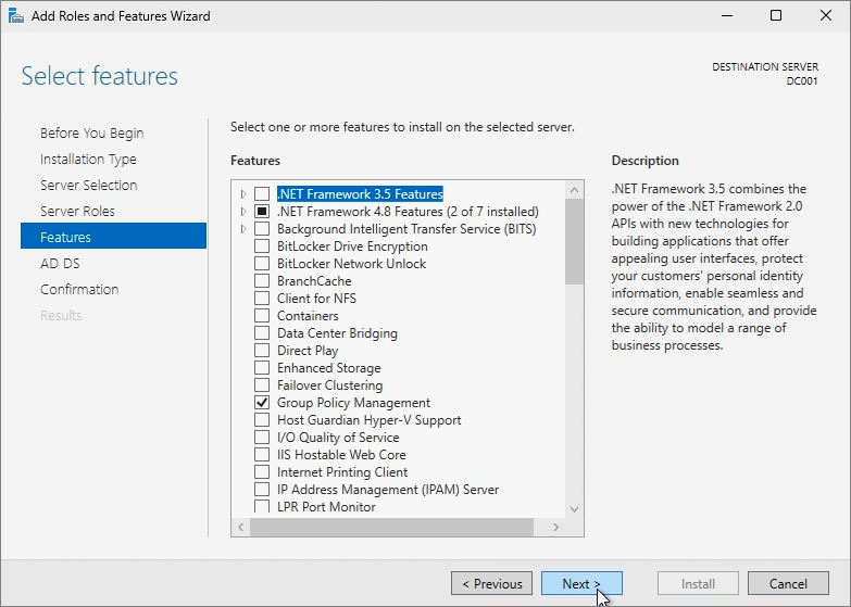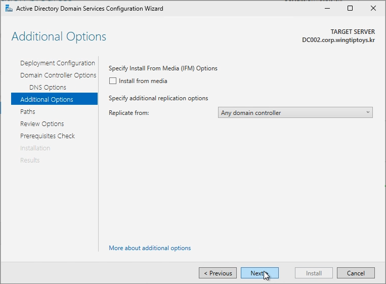 Proceed with the installation of Active Directory Domain Services Roles in the same manner as on the Main DC.