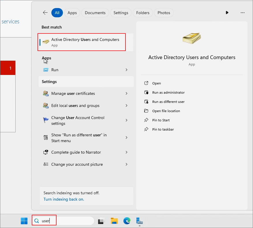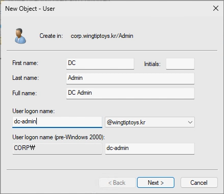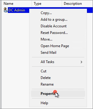 Create an Admin account to be used on the DC as shown below. (It is recommended not to use the default Administrator account for security purposes.)