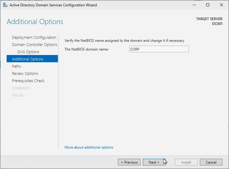 After creating the DSRM Password, proceed to Next. Until Windows Server 2022, the functional level was set to 2016, but it has now been upgraded to 2025 in Windows Server 2025.
