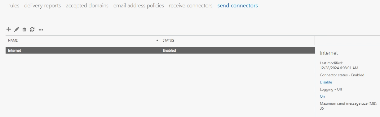 Verify that the Send Connector has been successfully created.