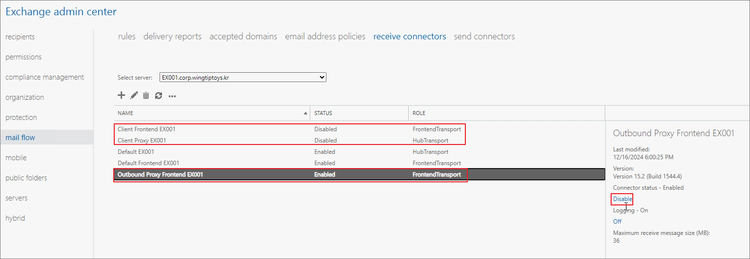 Step 9. Disable unused Receive Connectors.
