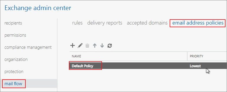 Mail flow -> email address policies -> Default Policy