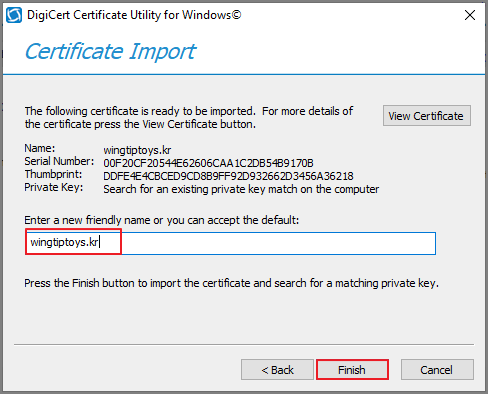 Import the issued certificate into the server.