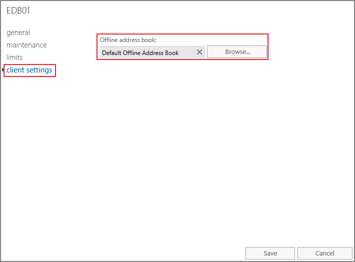 Assign the Offline Address Book (OAB) to each database.