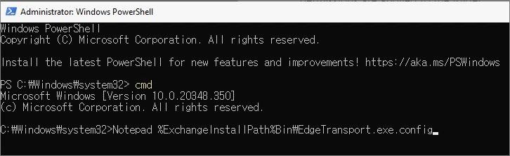 Notepad %ExchangeInstallPath%Bin\EdgeTransport.exe.config