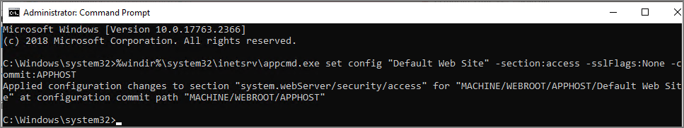 %windir%\system32\inetsrv\appcmd.exe set config "Default Web Site" -section:access -sslFlags:None -commit:APPHOST