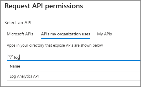 4. Select APIs my organization uses → Log Analytics API