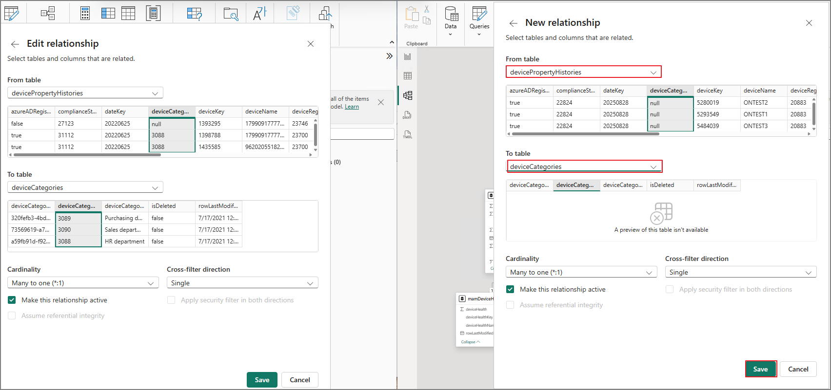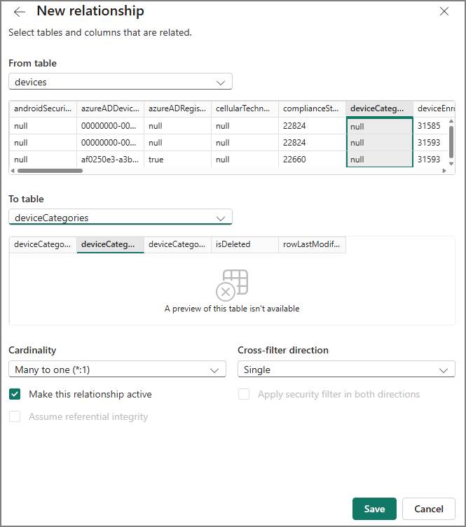 Since each environment is different, table relationships may vary. Use the following approach as a reference, and match the relationships to the template as needed.