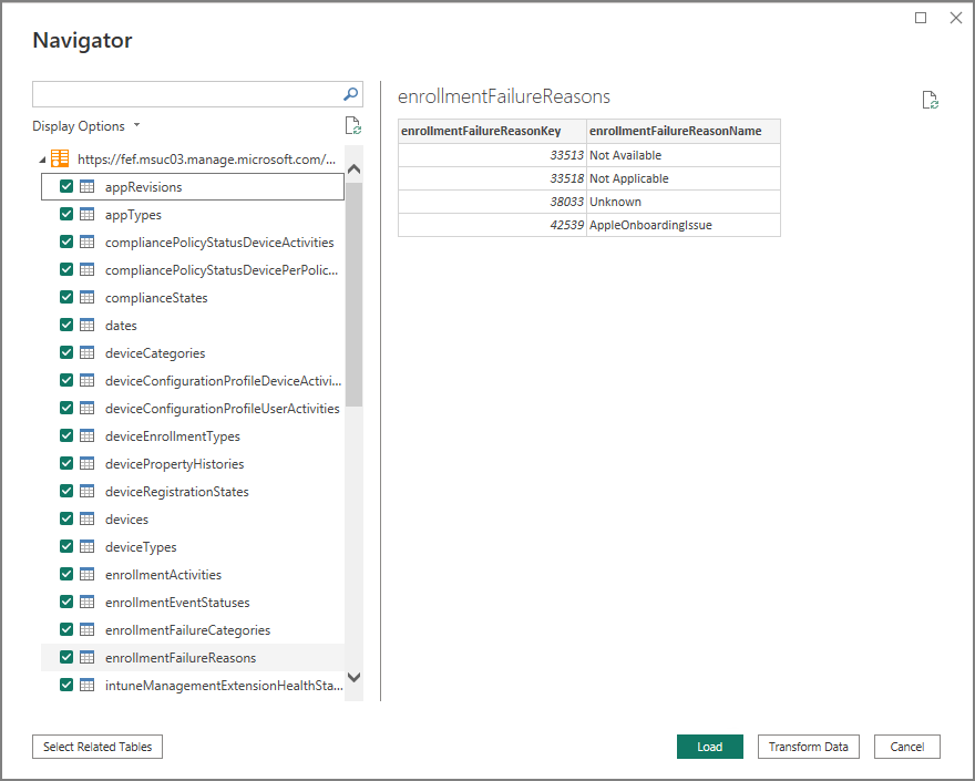 All available tables will be listed – check all and click Load