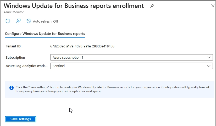 Once devices are ready, you need to enable Windows Update for Business reports and link it to your Azure subscription and Log Analytics workspace.