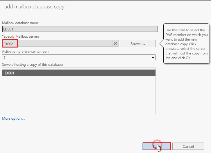 Specify the DAG name -> Enter Witness Server details -> Click Save