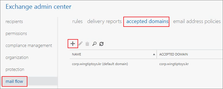 Go to Mail flow -> Accepted domains -> Click + (Add).