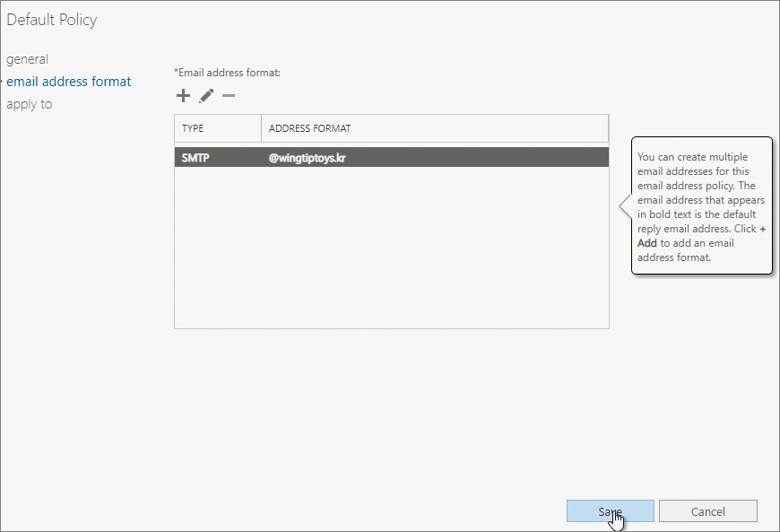 To ensure that newly created mailboxes are automatically assigned to the added domain, you need to modify the Email Address Policies.