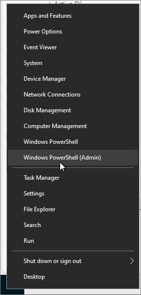 Right-click on the Start button -> Run PowerShell as Administrator.