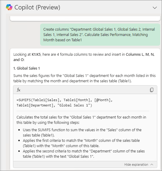 Clicking "Hide explanation" allows you to check the explanation of the formula.