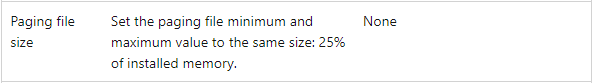 According to the 2019 technical documentation, virtual memory is recommended to be set to 25% of the configured RAM, likely because the minimum recommended RAM is 128GB.
