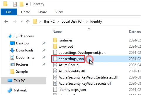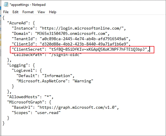 Open the Appsettings.json file using Notepad.
