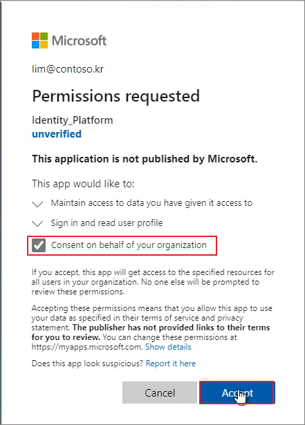 Upon first access, the permissions are displayed as shown below -> Click Accept. -> Accept