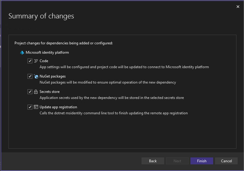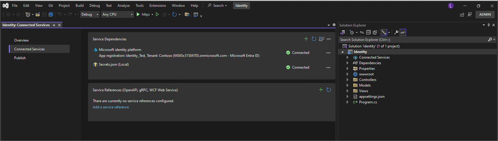 Service is registered, and verify that Secrets.json (Local) has been created.