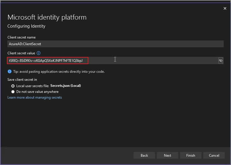 Save the Client secret value in a notepad.-> Next