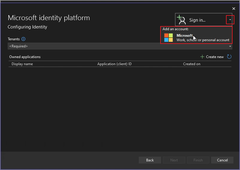 Authentication type -> Microsoft identity platform -> Create