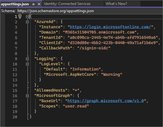 Double-click on the Appsettings.json file.