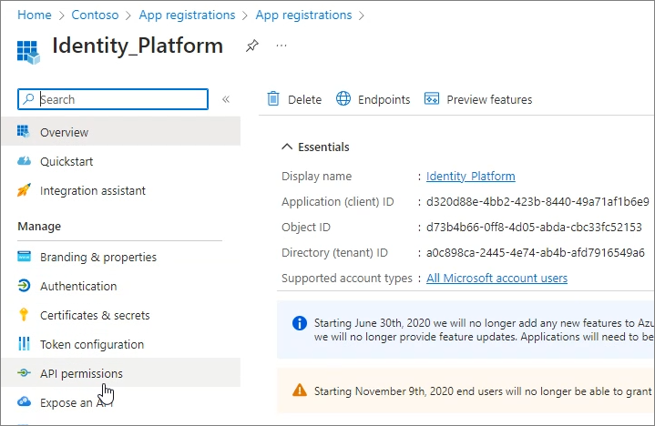 Add Microsoft Graph permissions -> Next