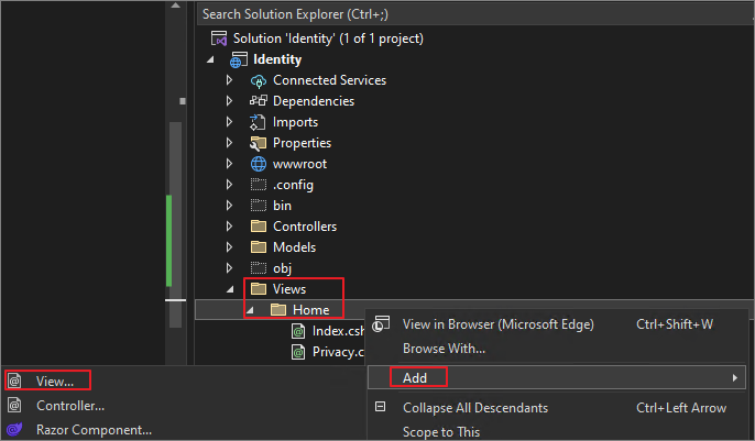 Views/Home Folder -> Add -> New Item