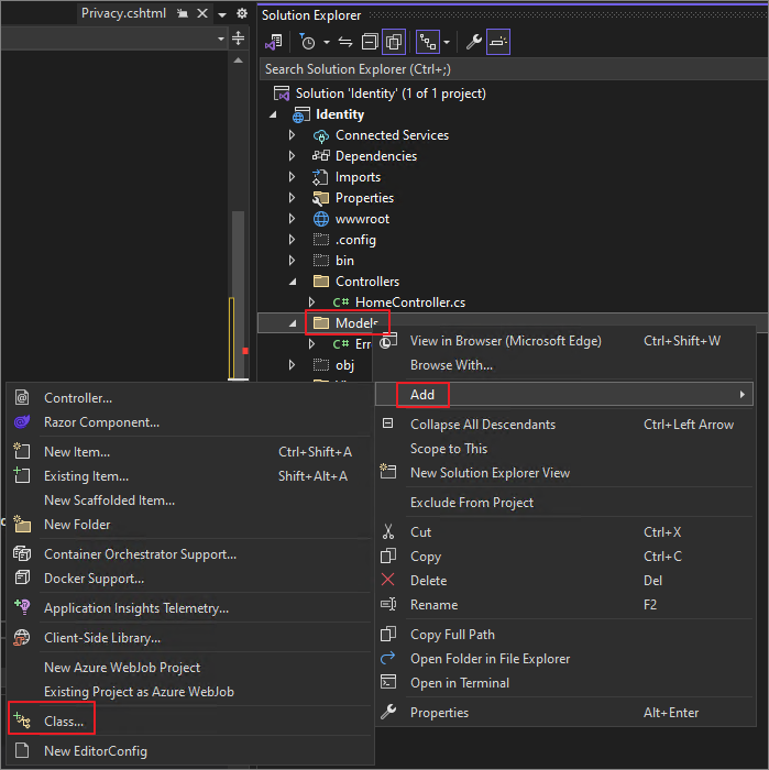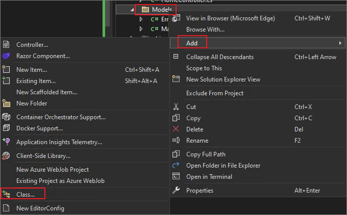 Right-Click on the Models folder -> Add -> Class