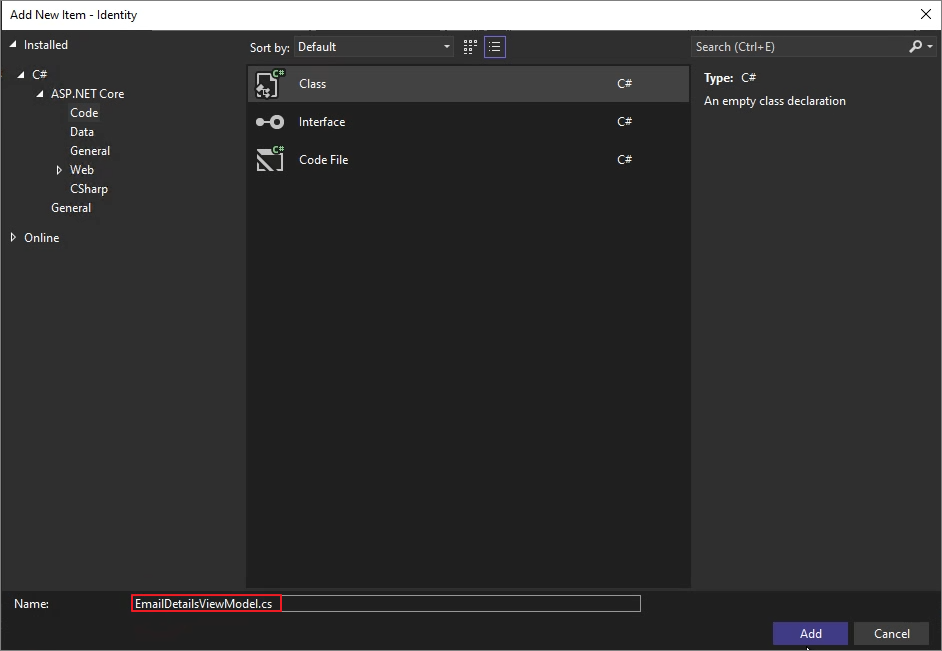 Add EmailDetailsViewModel.cs in the same way.