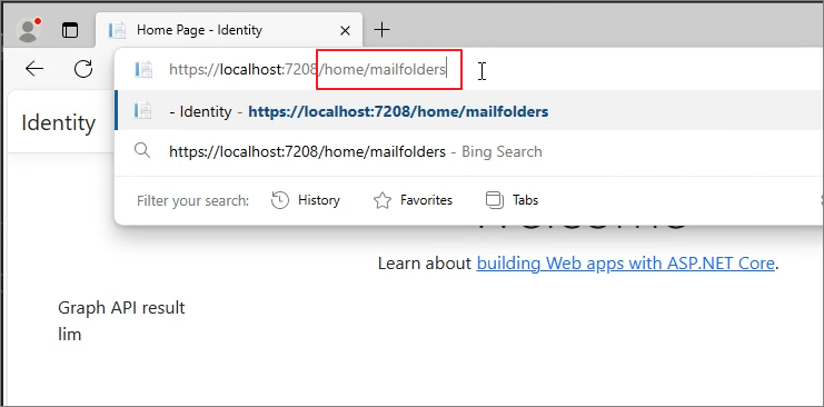 Microsoft Graph & IIS. (4) Display Mailbox using the Mail.read permission