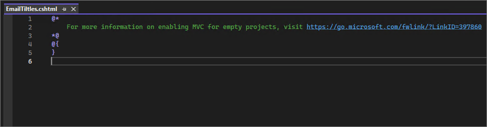 Modify the previously created Emailtitles.cshtml file.