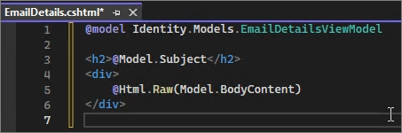 Create EmailDetails.cshtml in the same manner as the previously created files.