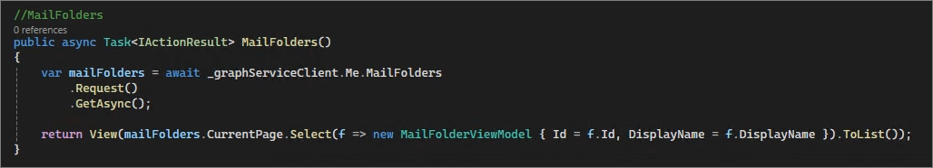 public async Task<IActionResult> MailFolders()