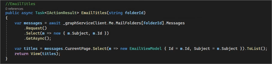 public async Task<IActionResult> EmailTitles(string folderId)
