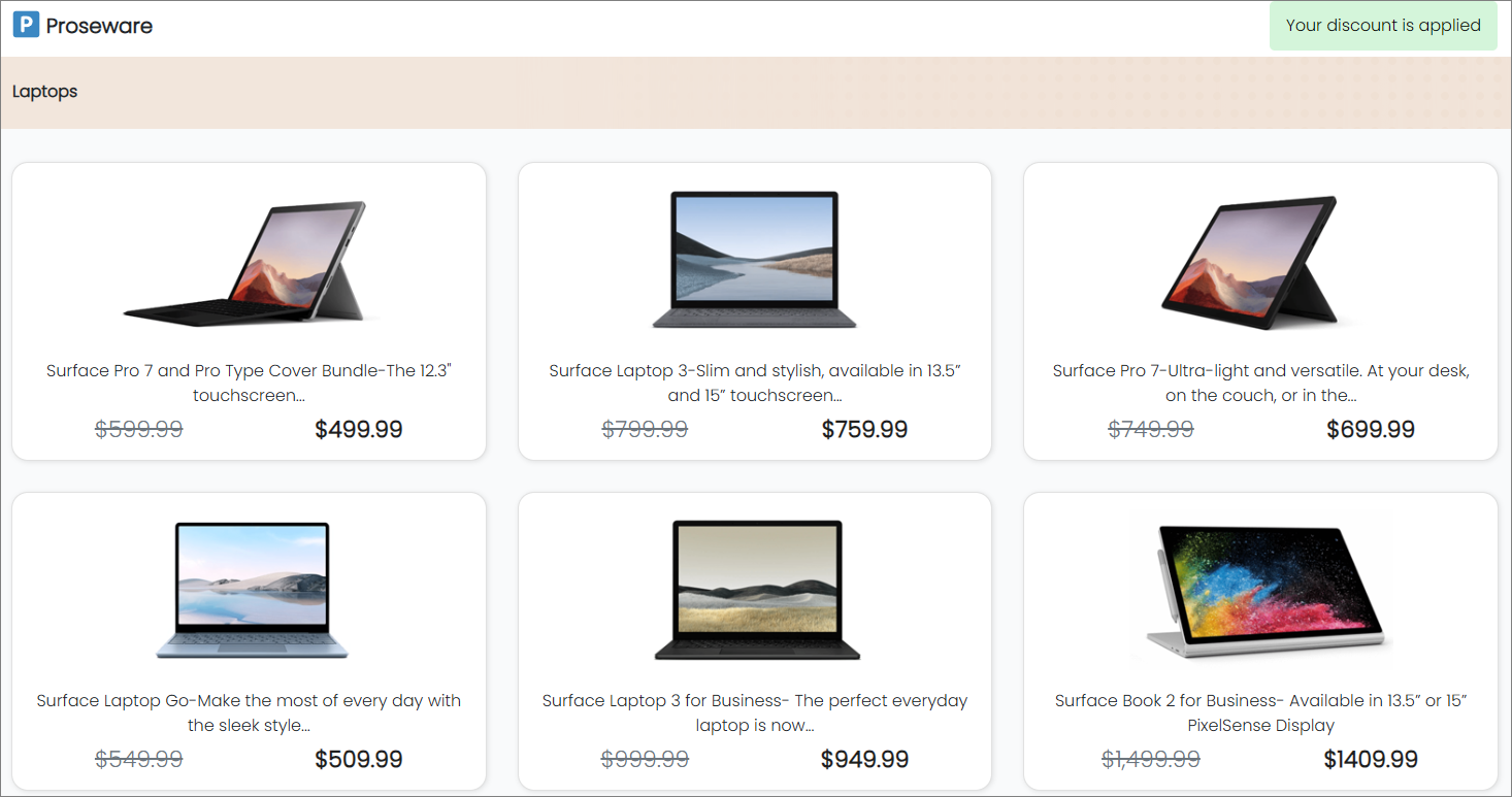 The test page can be verified with a scenario where employee discounts are applied, as shown below.