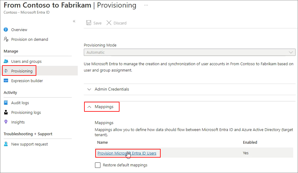 Provisioning > Mappings > Provision Microsoft Entra ID Users
