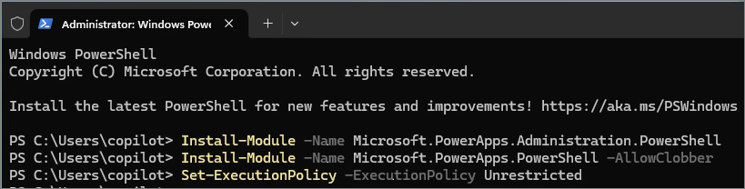 Install-Module -Name Microsoft.PowerApps.PowerShell -AllowClobber