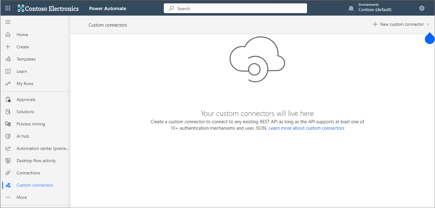 You can now see the Custom connectors menu as shown on the screen.