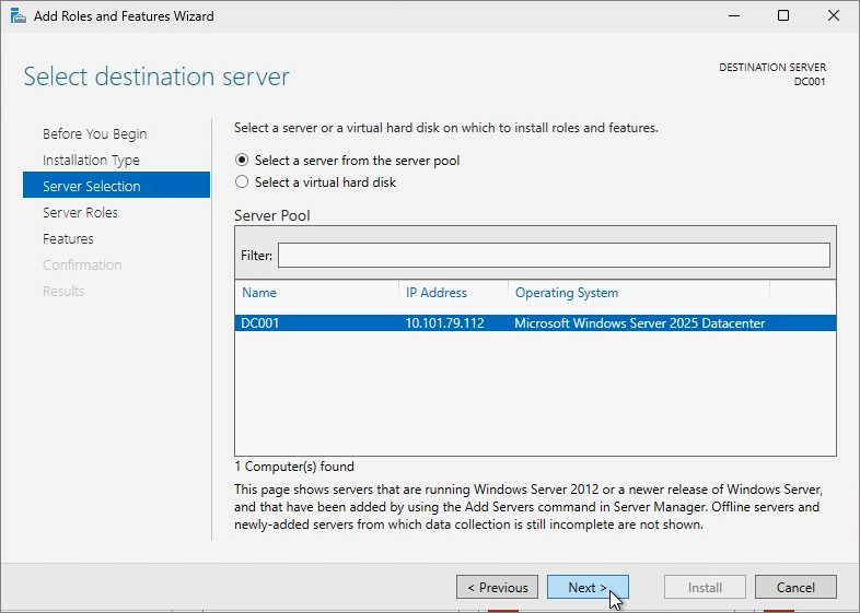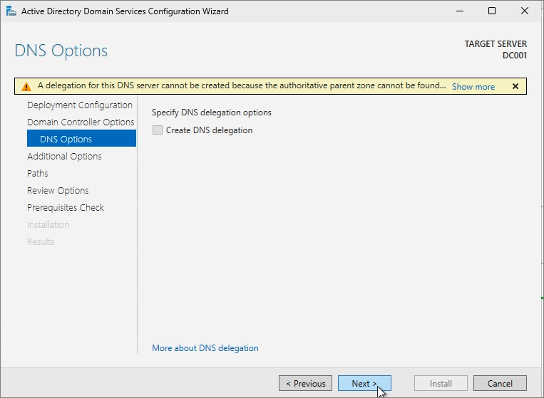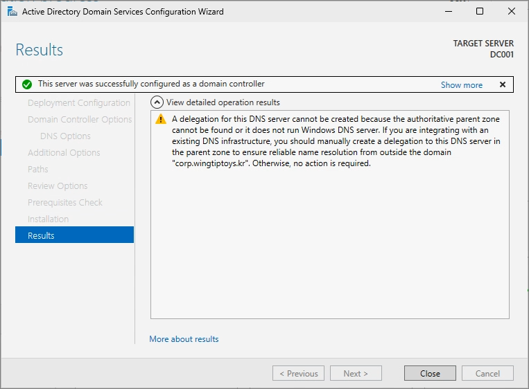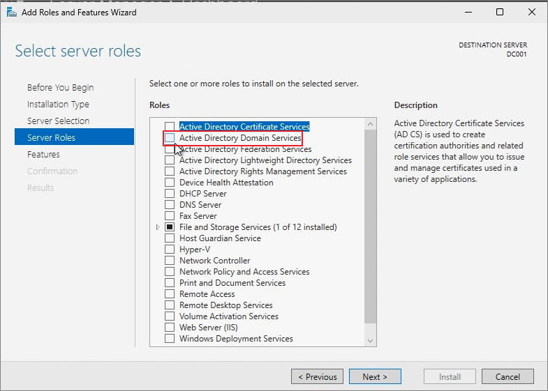 Proceed with the installation of Active Directory Domain Services Roles in the same manner as on the Main DC.